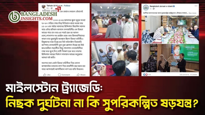 সূত্র বলছে, জামায়াতে ইসলাম দীর্ঘদিন ধরে সরকার পতনের ষড়যন্ত্রে কোটি কোটি টাকা বিনিয়োগ করেছে। তাদের অতীত কর্মকাণ্ড, আন্তর্জাতিক যোগাযোগ ও সাম্প্রতিক ঘটনাবলি মিলিয়ে সন্দেহ আরও ঘনীভূত হচ্ছে যে, মাইলস্টোন ট্র্যাজেডি নিছক দুর্ঘটনা নয় বরং একটি ষড়যন্ত্রের অংশও হতে পারে। এই ঘটনার পূর্ণাঙ্গ ও স্বচ্ছ তদন্ত এখন সময়ের দাবি। শুধু বিমান বাহিনীর প্রযুক্তিগত ব্যর্থতা খুঁজে দেখলেই হবে না— ঘটনার পেছনের গভীর রাজনৈতিক বা গোপন উদ্দেশ্য খুঁজে দেখা জরুরি।