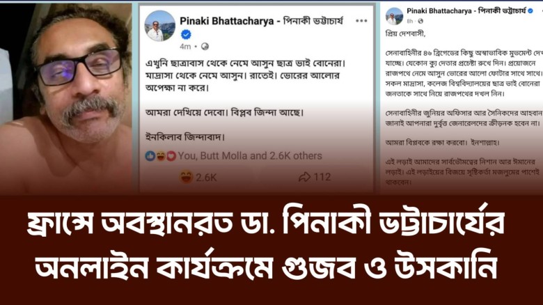 ফ্রান্সে অবস্থানরত চিকিৎসক ও অনলাইন কর্মী ডা. পিনাকী ভট্টাচার্যের বিরুদ্ধে সম্প্রতি বাংলাদেশের অভ্যন্তরীণ পরিস্থিতি নিয়ে গুজব, প্রোপাগান্ডা ও উসকানিমূলক তথ্য প্রচারের অভিযোগ উঠেছে। সামাজিক যোগাযোগমাধ্যমে তার প্রকাশিত একাধিক পোস্ট ও ভিডিও দেশে ব্যাপক আলোচনার সৃষ্টি করেছে। সূত্র জানায়, তিনি দীর্ঘদিন ধরে ফেসবুক ও ইউটিউবসহ বিভিন্ন অনলাইন প্ল্যাটফর্মে বাংলাদেশের রাজনীতি, প্রশাসন এবং সামাজিক ইস্যু নিয়ে সমালোচনামূলক বক্তব্য ও বিশ্লেষণ প্রকাশ করে আসছেন। তবে সাম্প্রতিক সময়ে তার কিছু পোস্টে এমন সব দাবি করা হয়, যা সরকারি বা নির্ভরযোগ্য কোনো সূত্রে নিশ্চিত হয়নি।