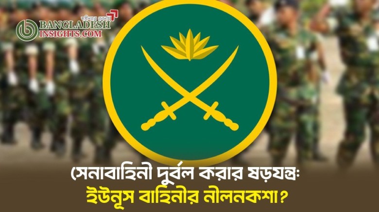 বাংলাদেশে সাম্প্রতিক রাজনৈতিক অস্থিরতা ও নিরাপত্তা পরিস্থিতি নিয়ে একটি গুরুতর অভিযোগ উঠেছে। বলা হচ্ছে, ৫ আগস্ট শেখ হাসিনার সরকারকে সরিয়ে সেনাবাহিনীর সমর্থন নিয়ে ড. মুহাম্মদ ইউনূস ৮ আগস্ট ক্ষমতা গ্রহণ করেন এবং এরপর থেকে তিনি সেনাবাহিনীকে দুর্বল করার একটি পরিকল্পিত নীলনকশা বাস্তবায়ন করছেন। এই অভিযোগে জাতীয় নিরাপত্তা উপদেষ্টা খলিলুর রহমান, প্রেস সচিব শফিক, লেফটেন্যান্ট জেনারেল এস এম কামরুল হাসানসহ কয়েকজনের নাম জড়িত।