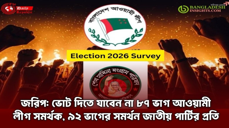 ঢাকা, ১১ ফেব্রুয়ারি ২০২৬: শেখ হাসিনা সংগ্রাম পরিষদের উদ্যোগে পরিচালিত একটি জরিপে আওয়ামী লীগ এবং এর অঙ্গসংগঠনের নেতাকর্মী ও সমর্থকদের মধ্যে আসন্ন ১২ ফেব্রুয়ারির নির্বাচন ও গণভোটকে ‘প্রহসন’ হিসেবে চিহ্নিত করা হয়েছে। হোয়াটসঅ্যাপ, টেলিগ্রাম ও সি...…